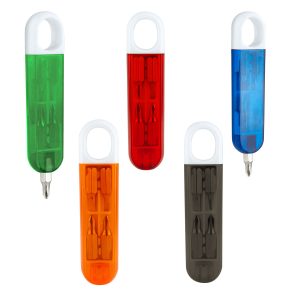 Contiene desarmador con 2 puntas de cruz y 2 puntas planas diferentes e intercambiables.